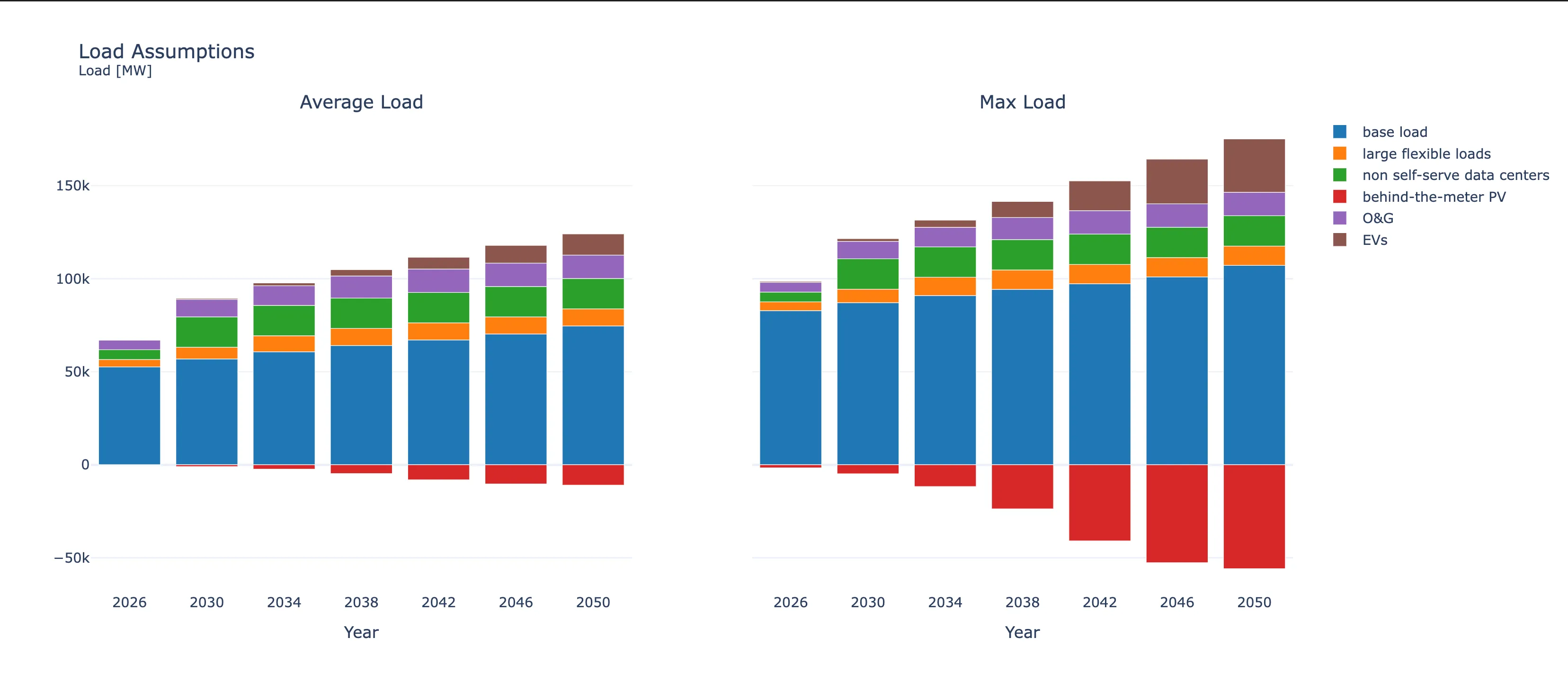 We use LTLF for Base, BTM PV, EV, and LFL. We do not take ERCOT’s Contracts & Officer Letters into our demand assumptions; instead, we apply Modo’s in-house bottom-up large-load build, informed by our research team. Oil & gas electrification assumptions are anchored to ERCOT’s Permian Basin Reliability Planning Study.