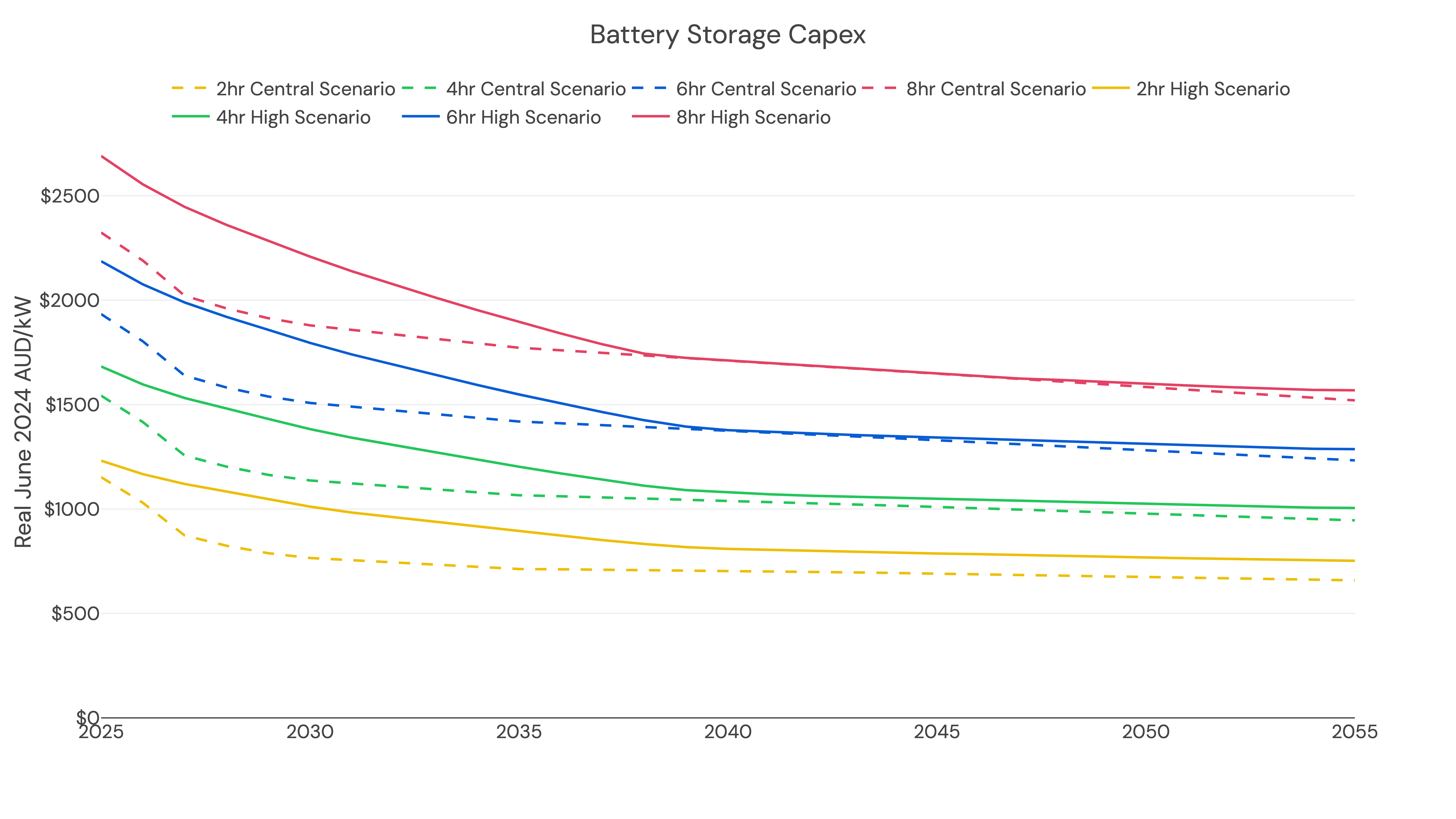 We have assumed a higher capex for BESS, using the CSIRO Gencost 2024/25 figures for the high scenario.