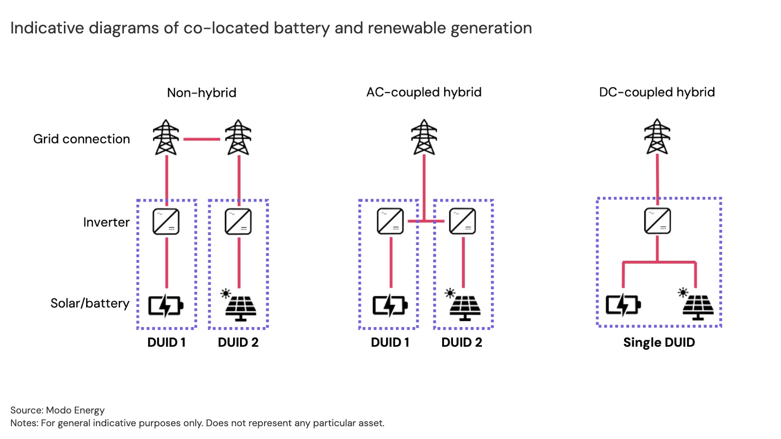 - DC-Coupled sites can be co-optimised in that the solar can charge the battery directly behind the same inverter, and dispatch as a single DUID.